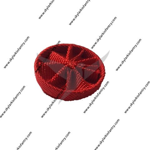 Military epaulettes made with gold wire bullion fringe, and covered in red or dark navy wool fabric. They’re almost 8″ long (20cm to be exact) by 5 1/8″ wide (13cm). The underside is white felt with a grommeted white leather tab to put a screw button through. Made in Pakistan.